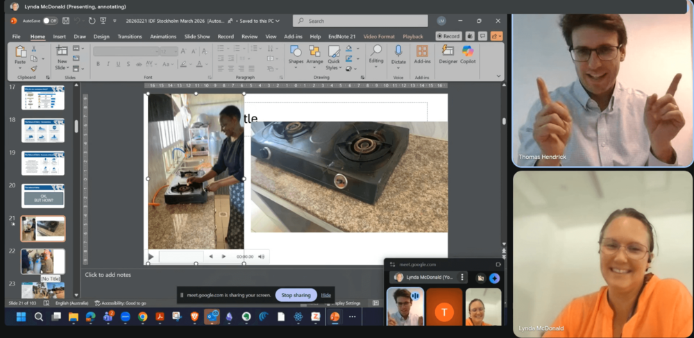 Tom coaching Lynda (PhD) on her keynote presentation to the international dairy industry in Sweden.