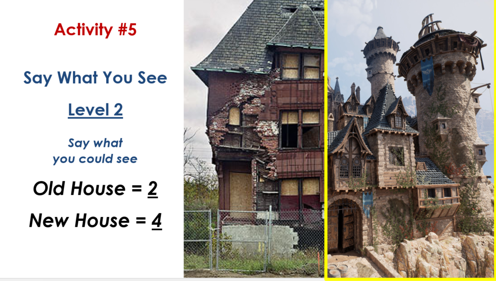 Level 4 - I ask questions and the client has to use words in that question to make a statement (not a question). For example, “would you invest in a bakery“ = “I might invest in a bakery…“. Believe it or not, almost everyone fails this level completely except for people with Aphantasia and Hypophantasia - who often say “this is so easy” (a sign of their overcompensating category prompting due to lack of image prompting).